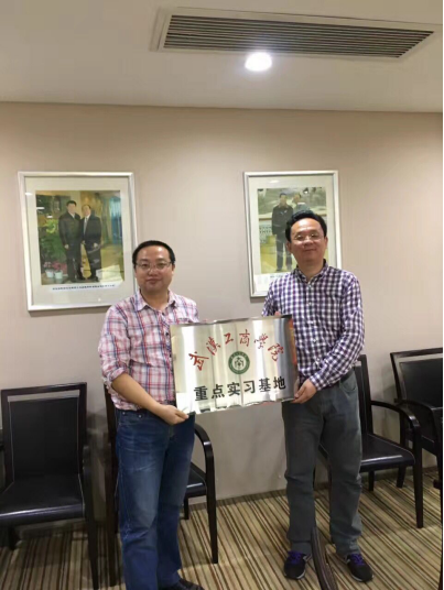 图为2016年会计学系主任聂新田副教授与大信所总审计师刘仁勇先生共同为“重点实习基地”牌匾揭牌仪式