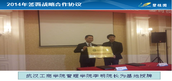 图为2014年米乐mile官方网站管理学院李明院长与武汉碧桂园凤凰酒店签署战略合作协议