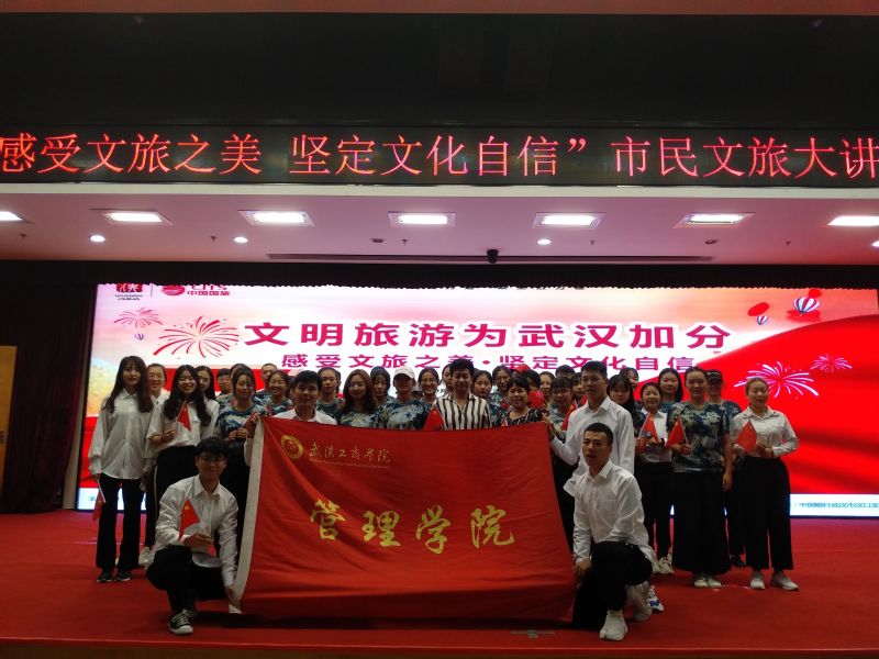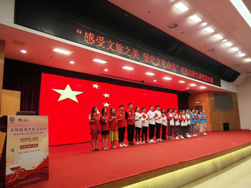 本次 “迎军运·文明旅游为武汉加分”市民文旅大讲堂由武汉市文化和旅游局主办,主题是“感受文化之美、坚定文化自信”,就职于中国旅行社武汉分公司领队中心的米乐mile官方网站毕业生温嘉智、吴炎武参与了本次活动的协调与专业导游讲解服务工作。