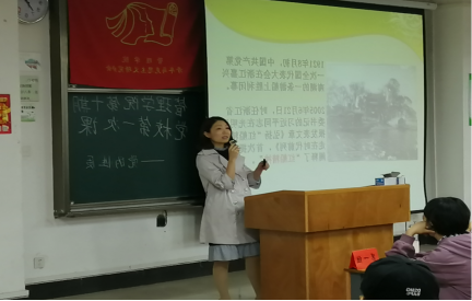 本次党课的主题是:党的性质。李妮老师首先解释了什么是红船精神,以及有关李大钊共产主义思想的介绍。并且从中国近代的历史讲起,解释了中国为什么要选择社会主义,又是如何在曲折中发展的。从她所讲述的红船精神和李大钊事例中,同学们真正体会到了“只有共产主义才能救中国”这句话的真正含义。