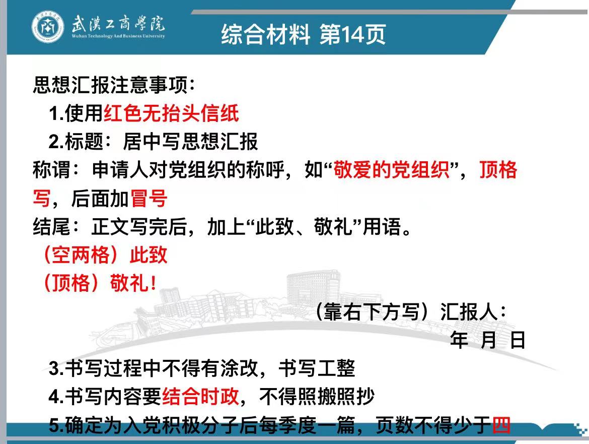 其次,宋柯萱同学再次讲解了关于个人基本情况的填写。其中本人经历(包括学历)和家庭主要成员情况等内容。同时重点强调了思想汇报注意事项及入党申请书注意事项:
