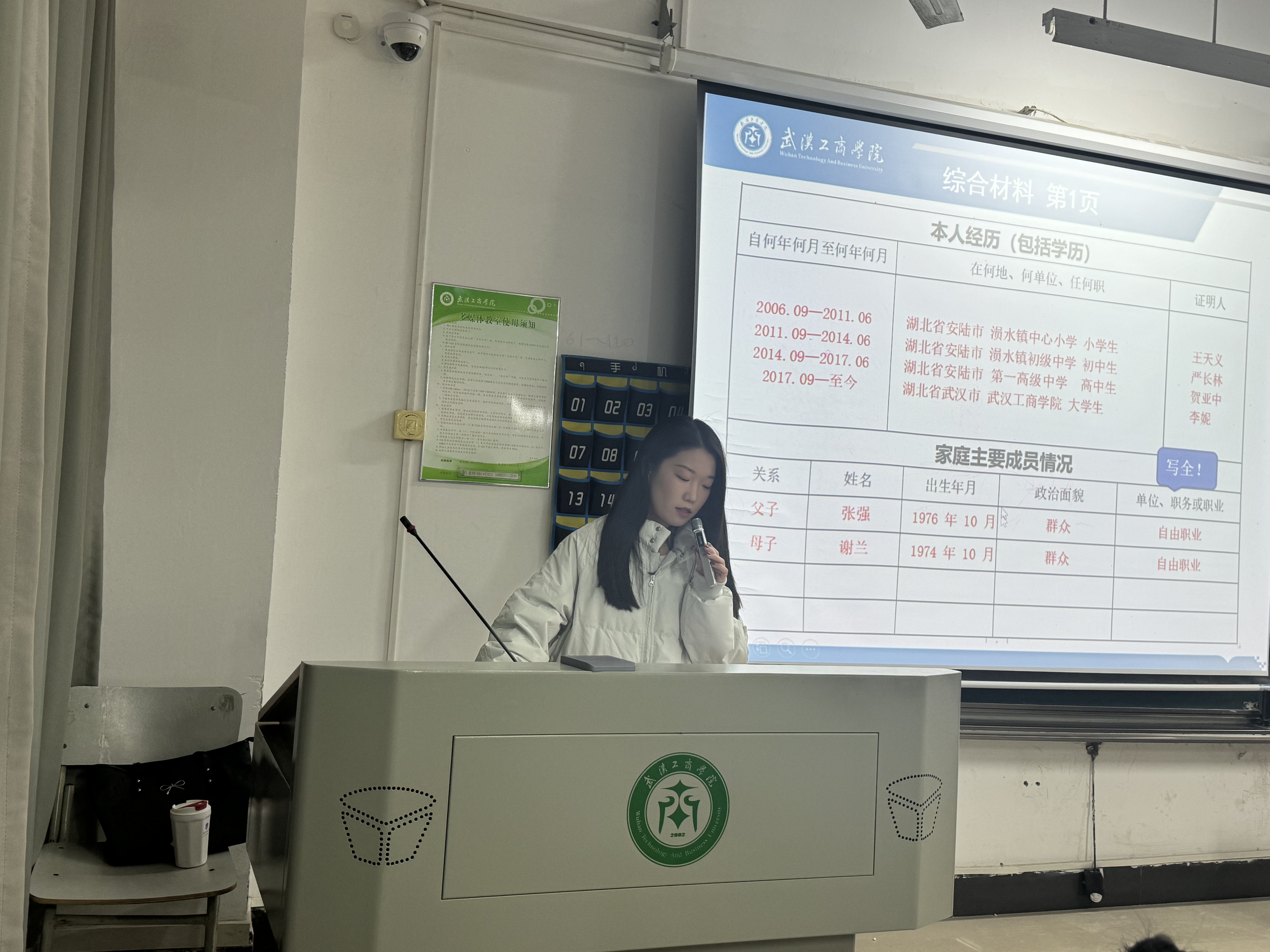 首先,在大家热烈的掌声欢迎下,辛梓彤老师向大家介绍本次党课的主题:综合材料填写规范。老师介绍了我校的四个党支部的支部信息以及党委书记,并说明了填写材料的要求:一、凡向党组织正式提出入党申请并被确定为入党积极分子的同志填写此表。二、表中栏目一律由入党积极分子本人及所在党支部实事求是、认真负责地及时填写。三、此表均应用钢笔、签字笔或毛笔填写,要态度认真、字迹清楚,不得随意涂改。四、凡未填写此表或入党之前临时填表者,概不审批。五、入党积极分子填表后交由所在党支部妥善保存,入党后将此表连同《入党志愿书》一并存入本人党员档案。