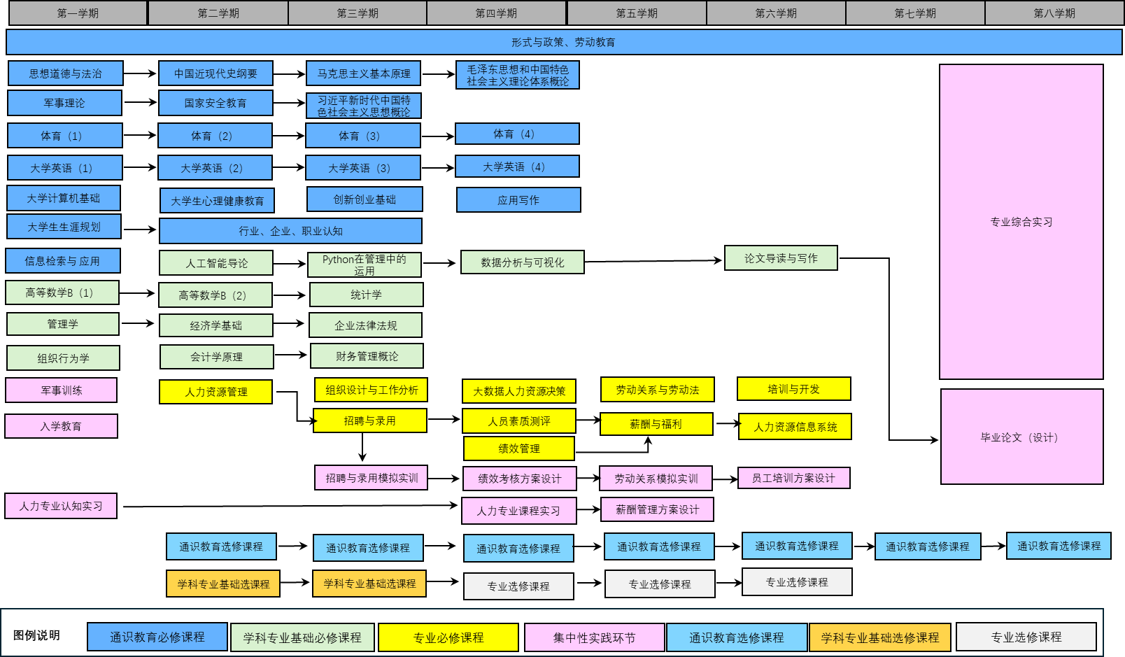 专业核心课程:人力资源管理、组织设计与工作分析、招聘与录用、人员素质测评、绩效管理、薪酬与福利、培训与开发、劳动关系与劳动法、大数据人力资源决策
