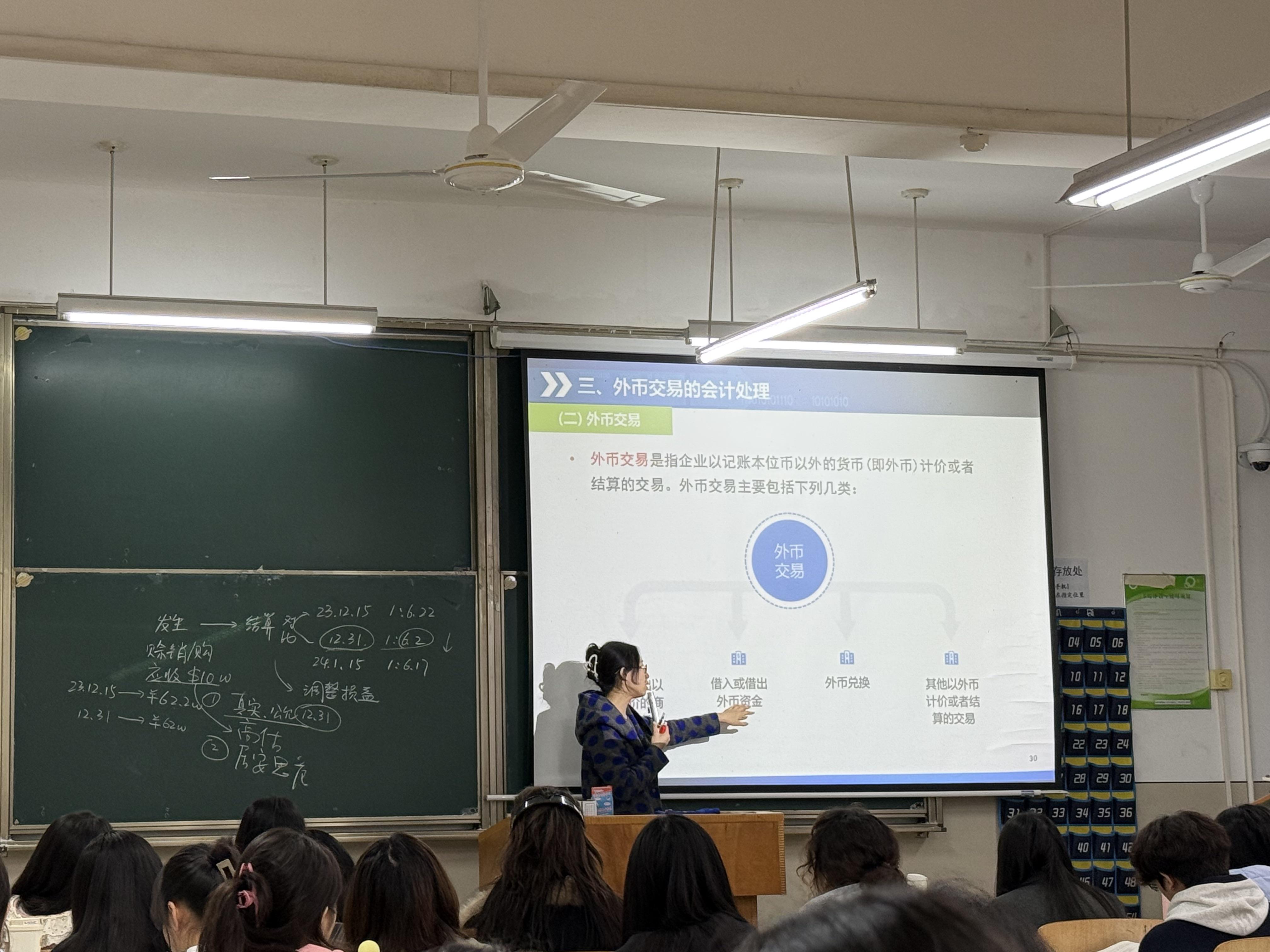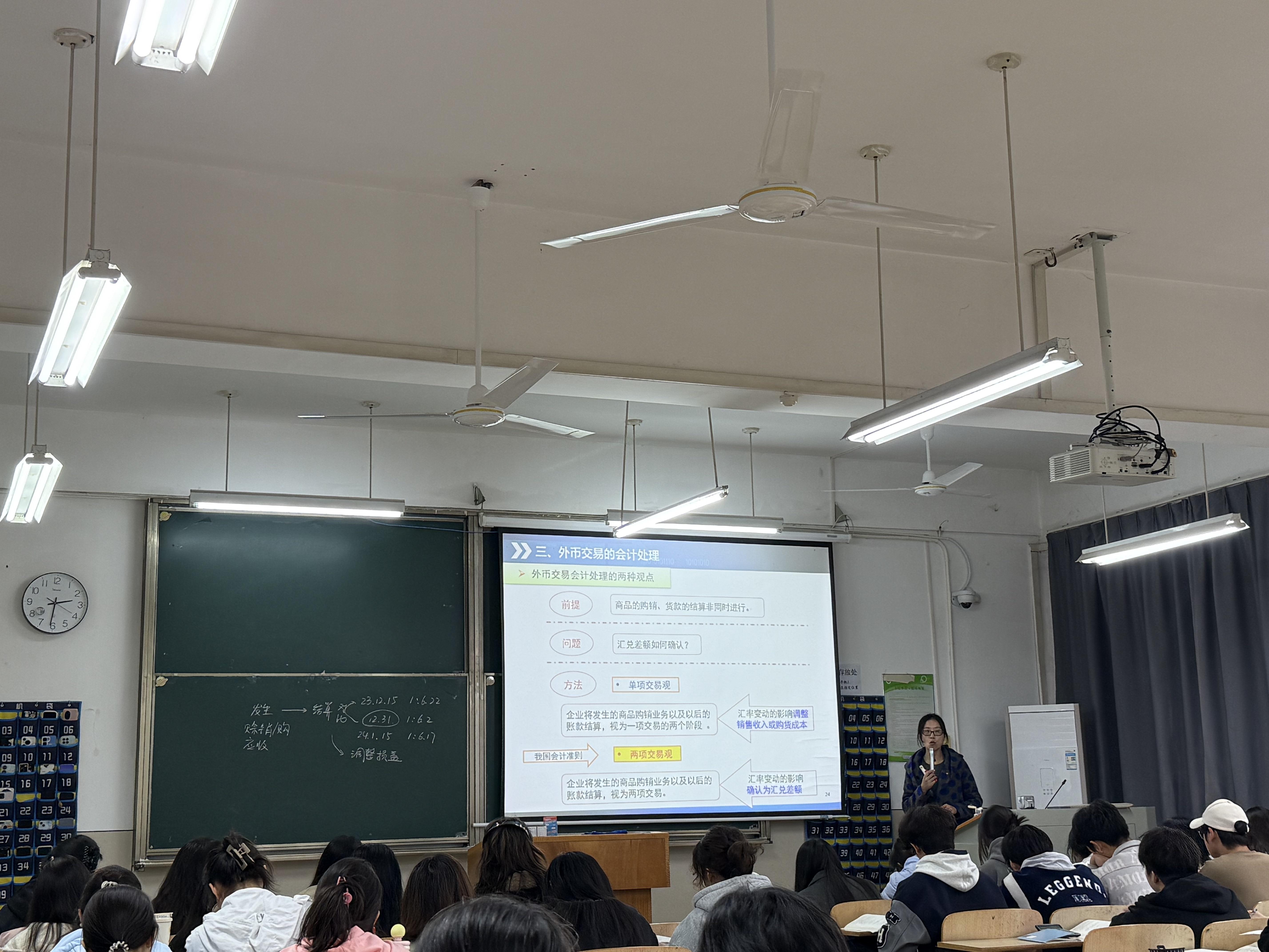 徐文思老师以其深厚的学术功底和丰富的教学经验,为观摩教师呈现了一堂精彩丰富的教学示范课。她围绕高级财务会计的核心内容,采用理论讲解与案例分析相结合的方式,生动形象地讲解了合并报表、外币折算等复杂会计问题。