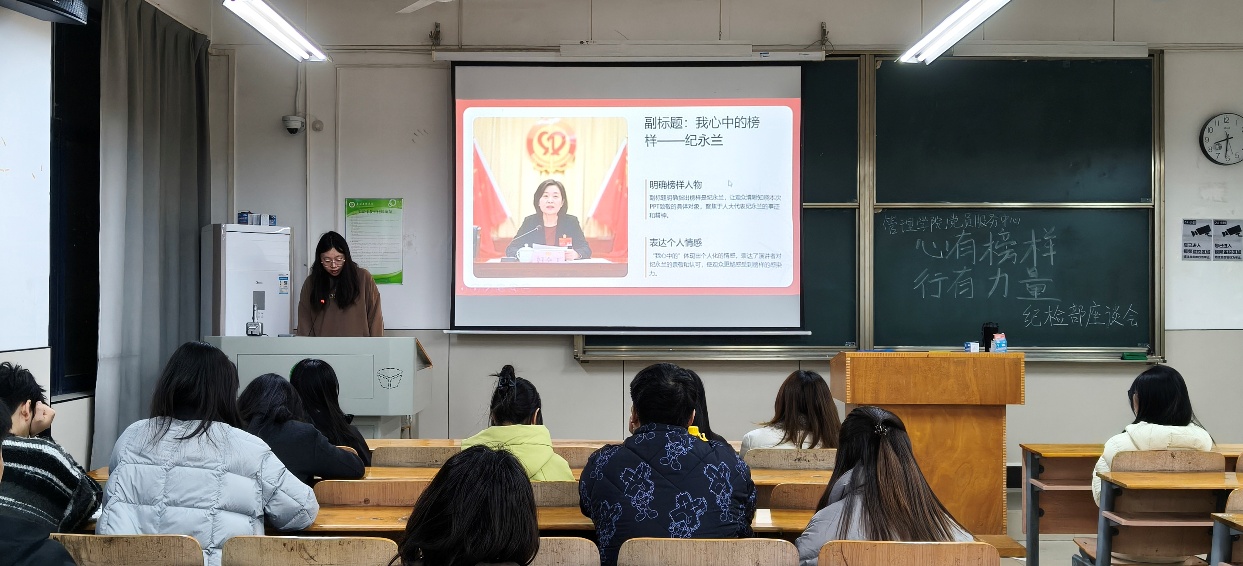 为深入贯彻落实弘扬榜样精神的重要求,持续引导青年学子从榜样事迹中汲取奋进力量,将初心使命转化为实干行动,2025年11月27日晚上20:30,管理学院党员服务中心纪检部在综合楼513教室举办以“心有榜样 行有力量”为主题的系列演讲座谈会。