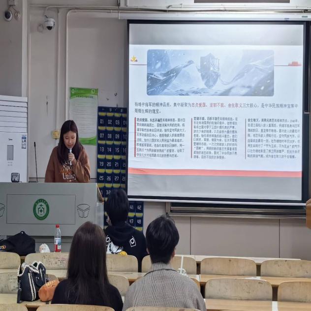 图为20期秘书部郑钰琦分享榜样人物——杨靖宇将军