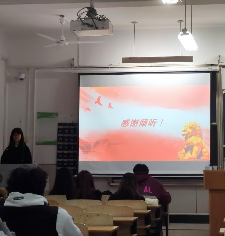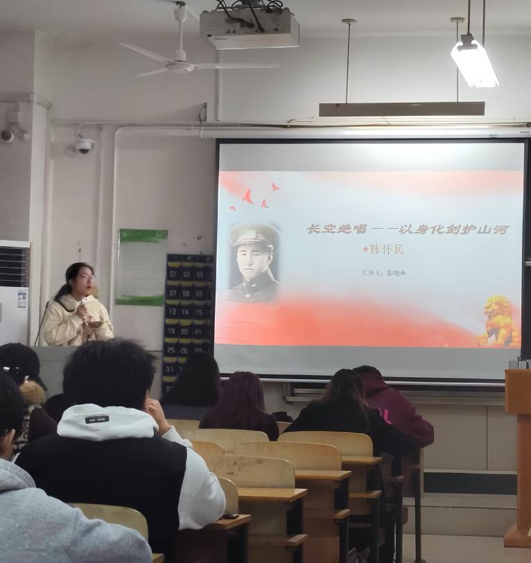 第四位分享者彭晓冉同志以抗战英烈陈怀民为榜样,动情讲述了这位22岁空军飞行员在武汉空战中驾机撞向敌机、以身殉国的英雄壮举。她表示,陈怀民在生死关头放弃跳伞求生,选择以血肉之躯捍卫山河的决绝,展现了超越生死的家国担当与民族气节,令她深受震撼。从他身上,她深刻认识到“天下兴亡、匹夫有责”的重量,并立志在未来将这份爱国情怀转化为实际行动,珍惜和平年代的学习机会,锤炼本领,在任何困难和挑战面前都不退缩,以新时代青年的担当守护先烈用生命换来的幸福安宁。