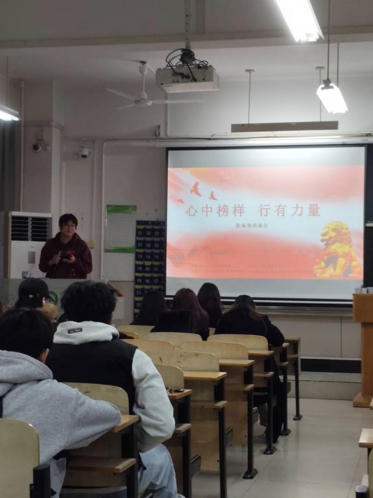 为深入学习贯彻关于大力弘扬榜样精神的重要指示,引导广大青年学子树立崇高理想、汲取奋进力量,2025年10月27日晚上6点半,党服新编部在综合楼305教室成功举办了以“心有榜样 行有力量”为主题的座谈会。