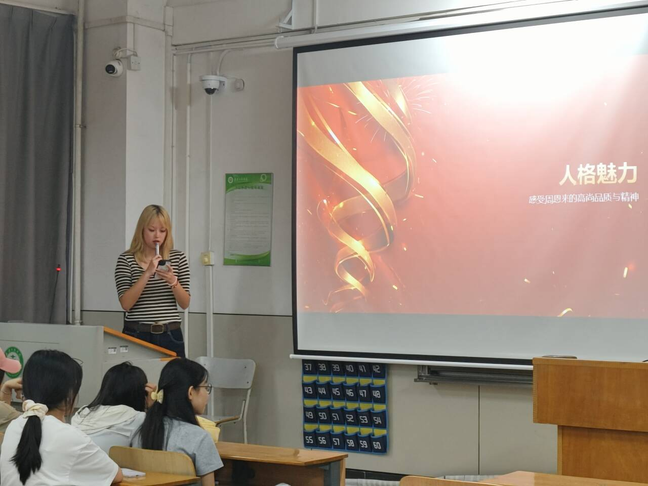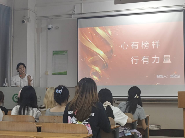 图为部员吴欣洁分享榜样人物