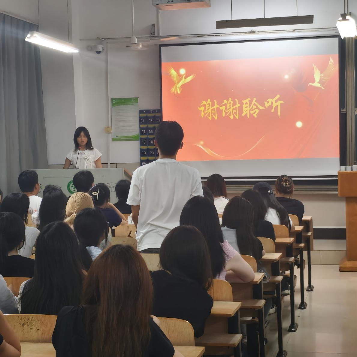 图为纪检部部长顾欣怡进行工作总结