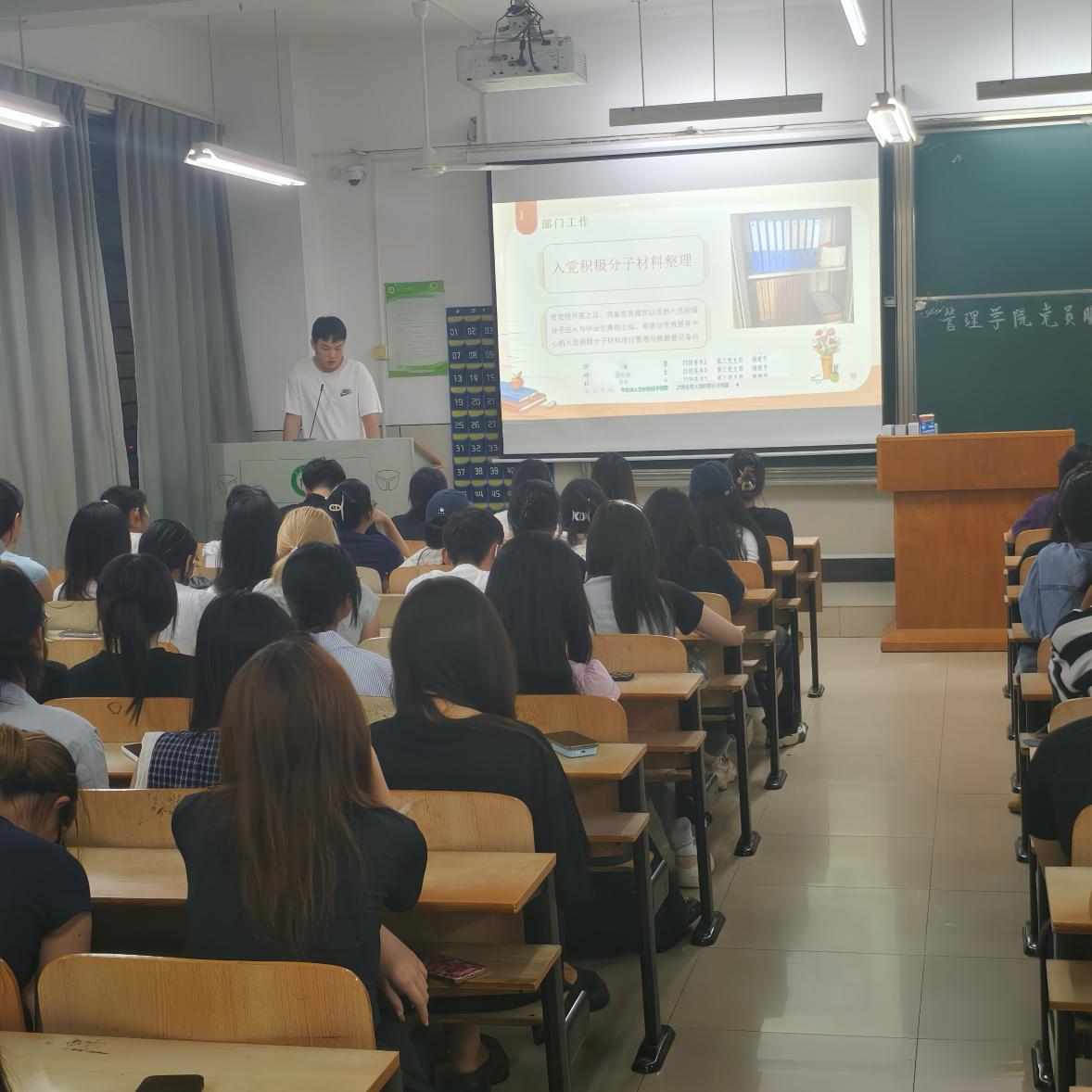 材料部部长熊斯瀚同志系统回顾上学期入党积极分子材料整理工作,总结工作经验,重申材料质量直接关系党员发展质量,要求部员以更高标准、更严要求完成后续任务;同时勉励全体部员通过深度参与中心活动实现自我提升与向上发展。