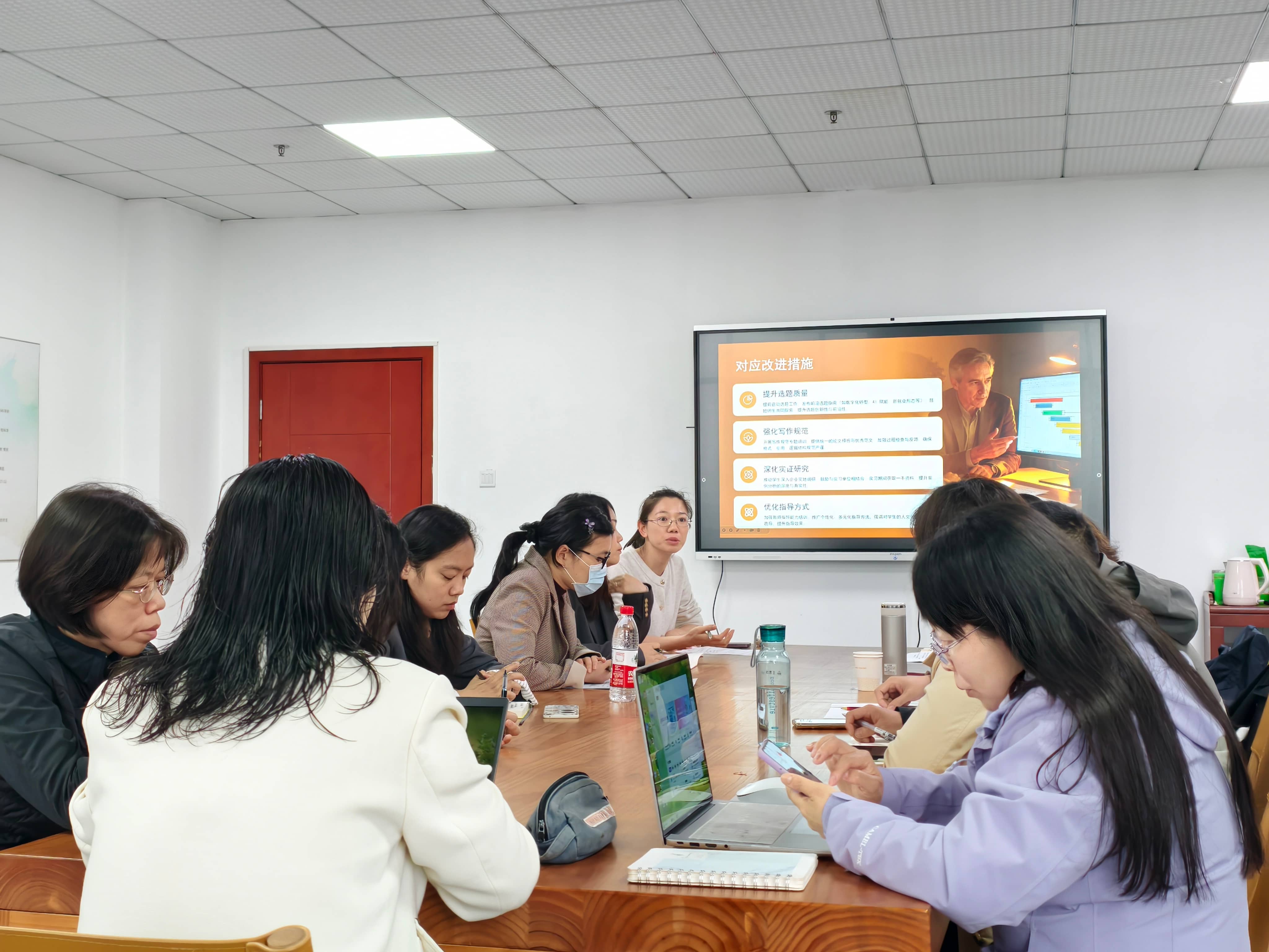 在督导与教师讨论环节,全体人员展开深度研讨。人力系教师结合自身指导经验,围绕选题创新、学生能力培养、指导规范优化等关键问题展开热烈交流。万玲莉督导和李志刚督导结合专业经验,针对教师提出的难题逐一点评解答,从毕业论文全过程管理体系构建、选题质量把控、指导流程细化等维度,给出专业实操建议,现场形成多项切实可行的改进共识。