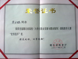 荣 誉:2011年12月,管理学院亓小林老师荣获首届湖北省高校《大学生职业发展与就业指导》课程教学大赛“优秀选手”奖。