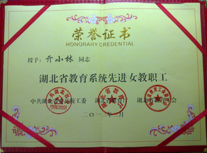 荣 誉:2012年2月,管理学院亓小林老师荣获“湖北省教育系统先进女教职工”的荣誉称号。