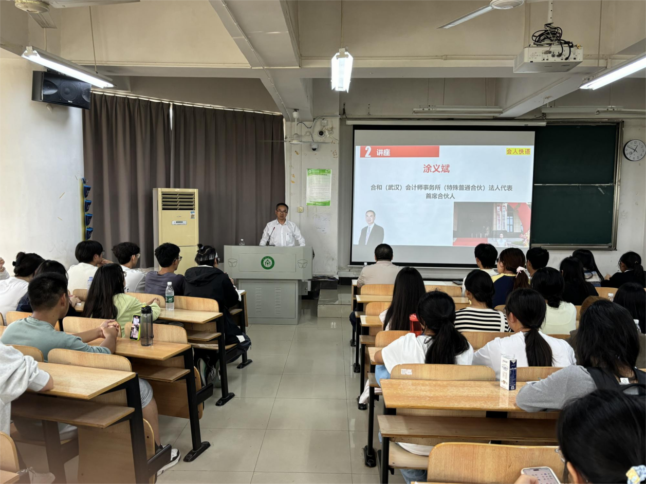 会上,合和会计师事务所法人代表、首席合伙人涂义斌首先介绍了会计行业发展背景及注册会计师职业发展前景,鼓励同学们在本科阶段学习会计类核心专业知识,借助产教融合CPA精英班的学习平台强化专业知识积累,培养实践能力,争做行业领先人才。