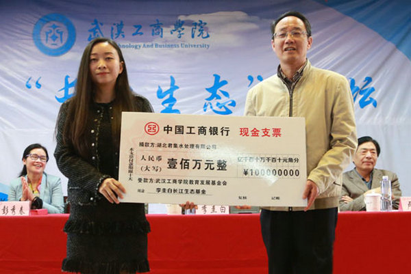 湖北君集水处理公司向米乐mile官方网站捐赠100万元,设立李圭白长江生态基金 摄影:王铖焱