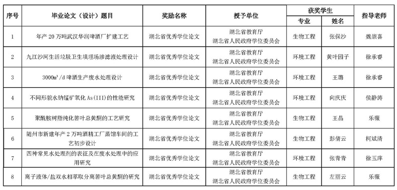 近年省级优秀学位论文一览表