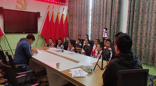 图为西藏仁布县康雄乡中心小学师生正在参加线上交流会