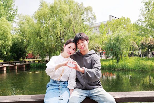 2019年4月,张文玉准备“希望之星”英语风采大赛时,英语成绩突出的周启文则积极指导她完善演讲稿和PPT,助力她获得了省赛二等奖。紧接着,两人一起报名参加了全国大学生英语竞赛。“我们一起自习,背单词、刷真题、练口语,比拼学习进度,交流复习心得,最后都取得了全国二等奖的好成绩。”正是一起备赛的过程,让两颗心越走越近。张文玉发现,周启文慢热的外表下有着一颗积极进取、诚实温柔的心。“这段经历让我们第一次有了并肩作战的感觉,相处起来很合拍,相互萌生了好感。”