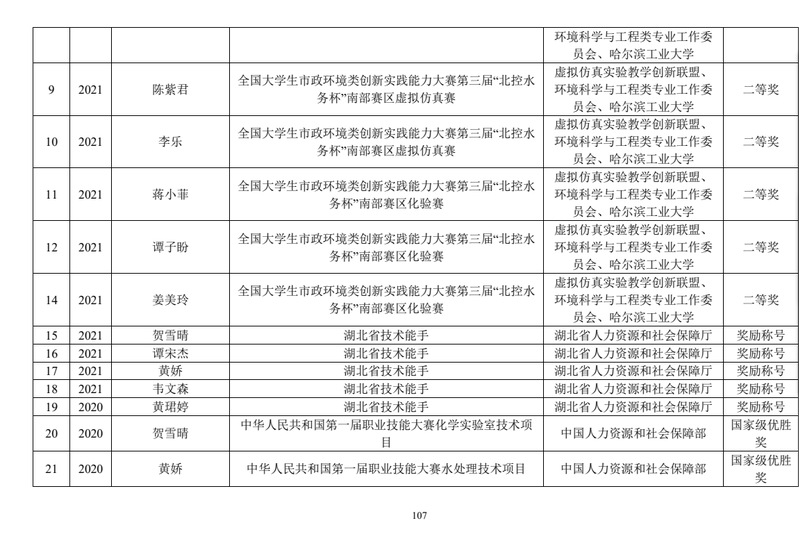 环境与生物工程学院学生学科竞赛获奖情况一览表
