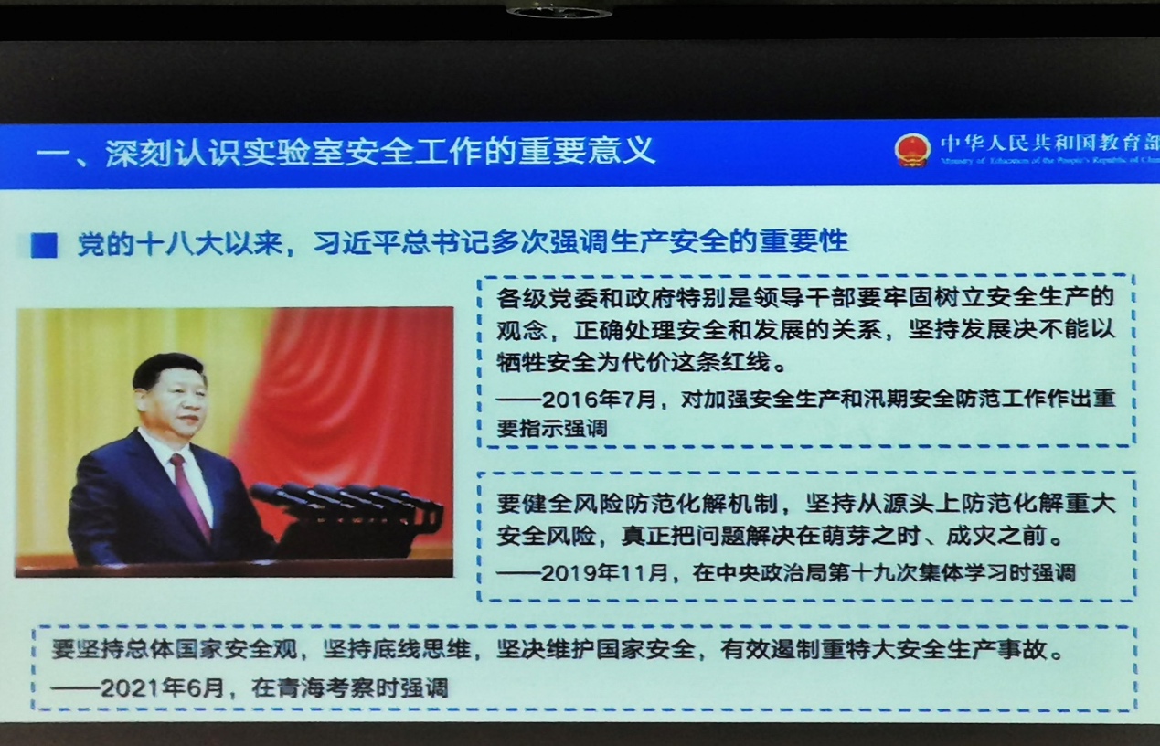 2023年4月7日,实验教学中心全体教师集中参加了由教育部科学技术与信息化司、高等教育司组织召开的“第二届高校实验室安全工作专题培训班开班式202年高校实验室安全检查启动暨培训会启动仪式”的线上培训会。教育部科学技术与信息化司、高等教育司、清华大学等领导依次做了报告。