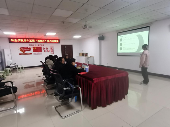 2025年3月7日中午,环生学院在综合楼1118会议室成功举办第十五届“挑战杯”院内选拔赛。担任本次比赛的评委有环生学院副院长郑丹老师、杨文婷老师、环境工程系副主任陶玲老师以及分团委书记尹佳丽老师。全院共有19支参赛队伍参加此次“挑战杯”院内选拔赛。