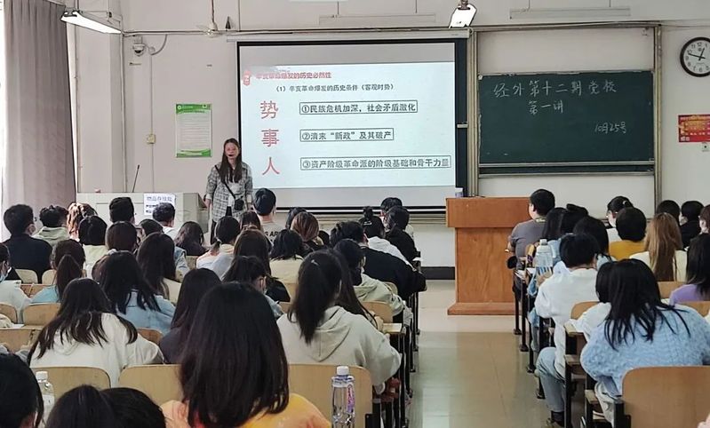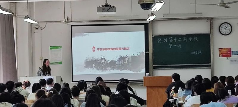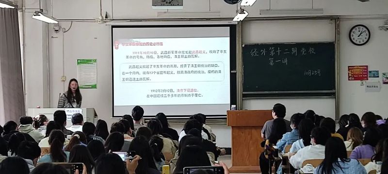 2021年10月25日,经济与商务外语学院第十二期党课培训第一讲在综合楼204顺利进行。