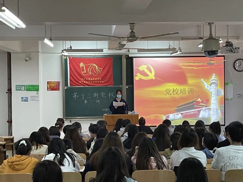 2022年4月29日,经济与商务外语学院党课培训第十三期第一讲在综合楼207进行。本次培训由经济与商务外语学院党总支书记胡航书记主讲。