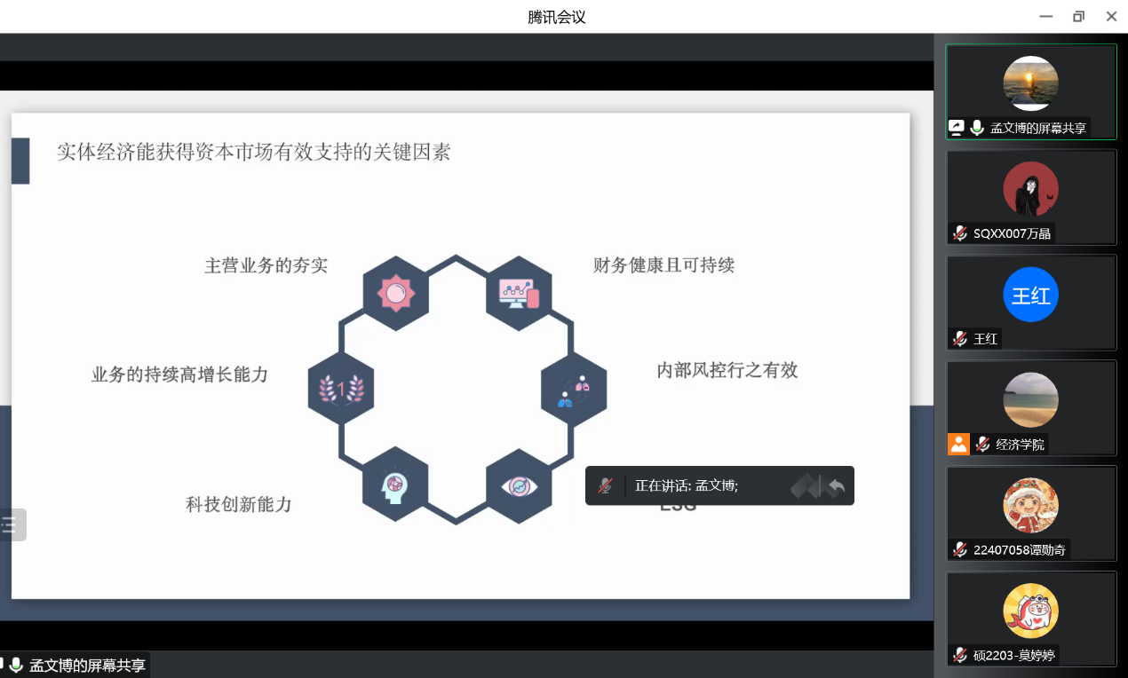 经济与商务外语学院新闻中心讯 (记者:刘炫)2022年12月2日下午19:00,中部金融讲坛第56期资本市场与实体经济的互动机制:创新与趋势在腾讯会议线上成功进行。本次讲座邀请了复星全球合伙人及联席CGO(首席发展官)孟文博先生担任主讲嘉宾,他结合多年在金融业的经验,围绕“金融市场创新、金融监管创新、金融产品创新”等三大维度展开演讲。