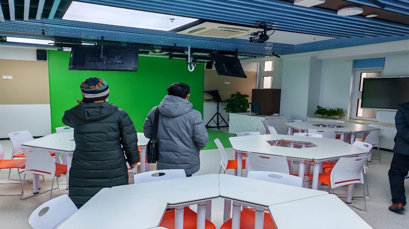 202412日,我校实验教学中心颜爱国副主任兼教务部副部长、经济与商务外语学院马洁副院长、外语实验室王志华老师一行在中国地质大学省级语言示范中心董成见主任的带领下,参观调研了语言实验室、高清录播室、虚拟仿真微课制作实验室、雅思中心等。