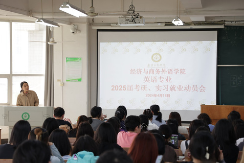 经济与商务外语学院新闻中心讯(记者 张星雨 摄影 陈雨乐)2024年4月18日,经济与商务外语学院于综合楼607召开了英语专业2025届考研、实习就业动员大会。此次大会由经济与商务外语学院副院长马洁主持。出席本次会议的有经济与商务外语学院党总支书记胡航,2021级毕业生指导教师,2020级实习生代表王奎以及2021级英语专业全体毕业生。