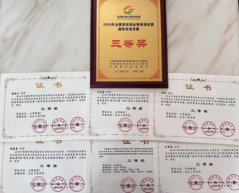 我院国际经济与贸易专业的汪志恒等5名学生在张晓骏、宝雪、张雯和刘娜等四位老师的带领下斩获第十四届全国高校商业精英挑战赛国际贸易竞赛国际业务模拟赛道三等奖1项,实现了我院国际经济与贸易专业在该项赛事上的“0”突破,体现了该专业在应用型人才培养工作上的深厚底蕴和丰富经验,有效推动了学院应用型人才培养模式、教学模式和考核评价模式的改革,对激发青年教师积极参与教学改革的主动性和积极性起到重要作用。