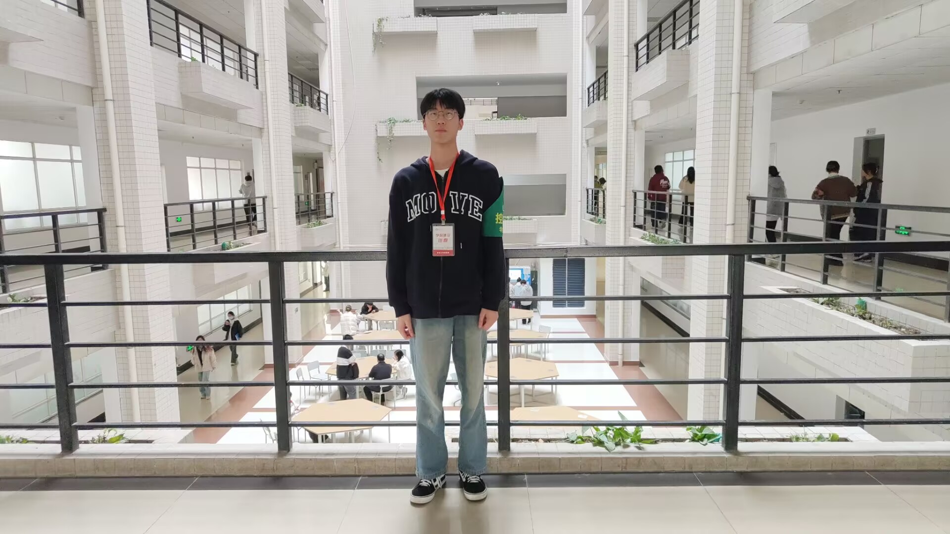 图为学生志愿者在岗巡查