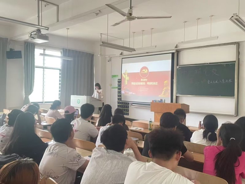 经济与商务外语学院新闻中心讯(记者:侯瑞琦 郑处金)2025年5月14日中午12:20,经济与商务外语学院第十九期党校第三讲在综合楼203教室举行。本次党课由经济与商务外语学院学生第二党支部书记田飞燕老师主讲,主题为“党员发展入党流程”。