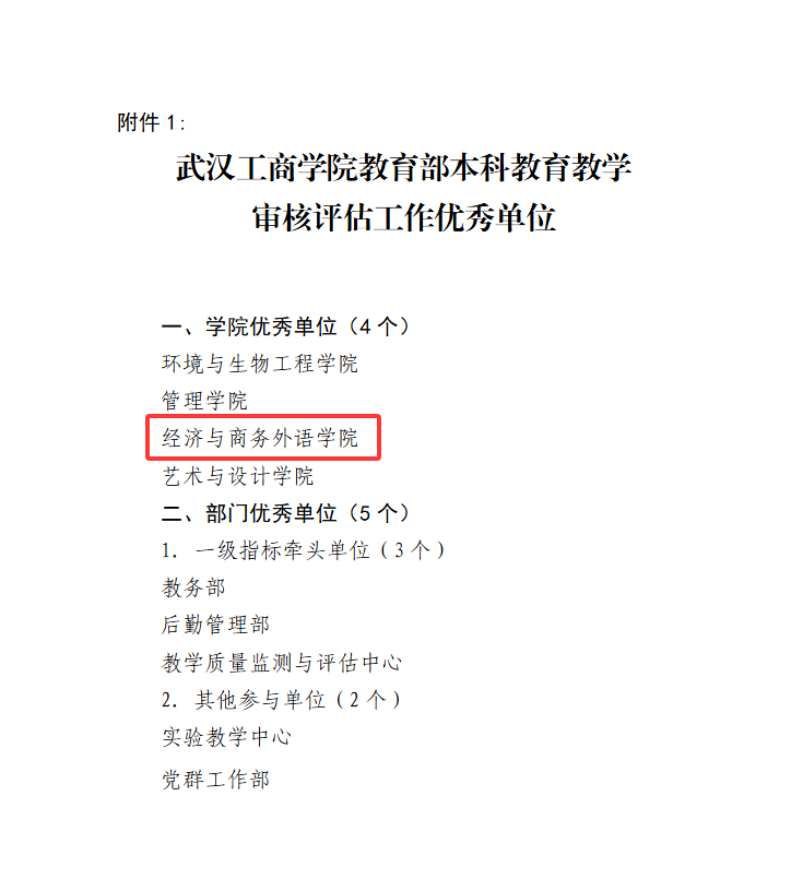 在教育部组织的教育教学审核评估工作中,经济与商务外语学院以其卓越的表现、扎实的功底和出色的成果,荣获“米乐mile官方网站教育部教育教学审核评估工作优秀单位”称号。