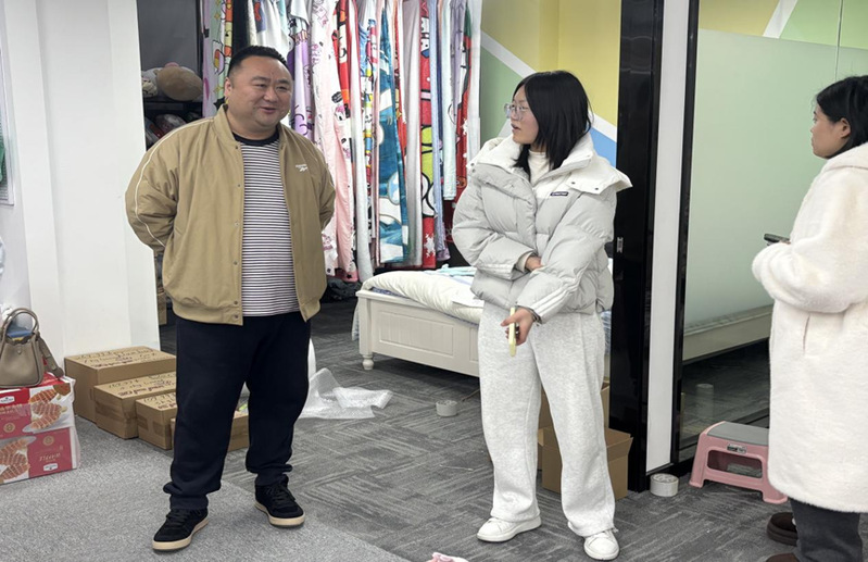 经济与商务外语学院新闻中心讯(记者:赵晓玉)2025年12月4日,学院党总支书记胡航、辅导员何香香、杨情一行3人来到武汉帝沃思科技有限公司,看望在这里实习的同学们,走访小组精心准备了慰问礼品,把学校的牵挂和温暖实实在在送到了大家身边。这次走访没有拘谨的流程,更像是一场暖心的家人座谈,从生活起居到工作成长,从当下困惑到未来规划,大家敞开心扉聊了很多,也让学校更真切地掌握了同学们的实习实况。