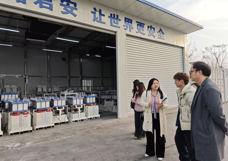 随后,部分教师及学生代表移步至君安储能实训基地,师生们参观了高性能电极材料等六大实验室,并近距离观察锌溴液流电池储能系统运行,了解其在全球能源转型中的关键作用。在互动交流环节,大家围绕新型能源发展趋势、储能技术应用前景热烈讨论。通过实地体验与案例分析,师生们真切感受到绿色技术如何转化为实际生产力,对双碳目标下经济转型路径有了更直观、深刻的认识。