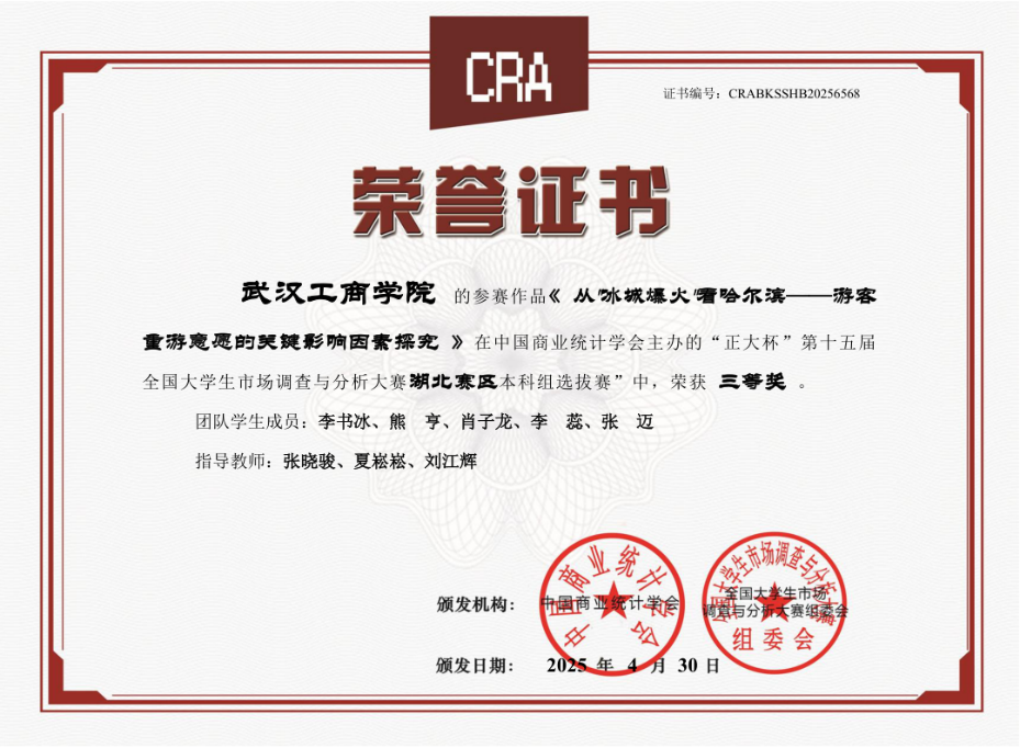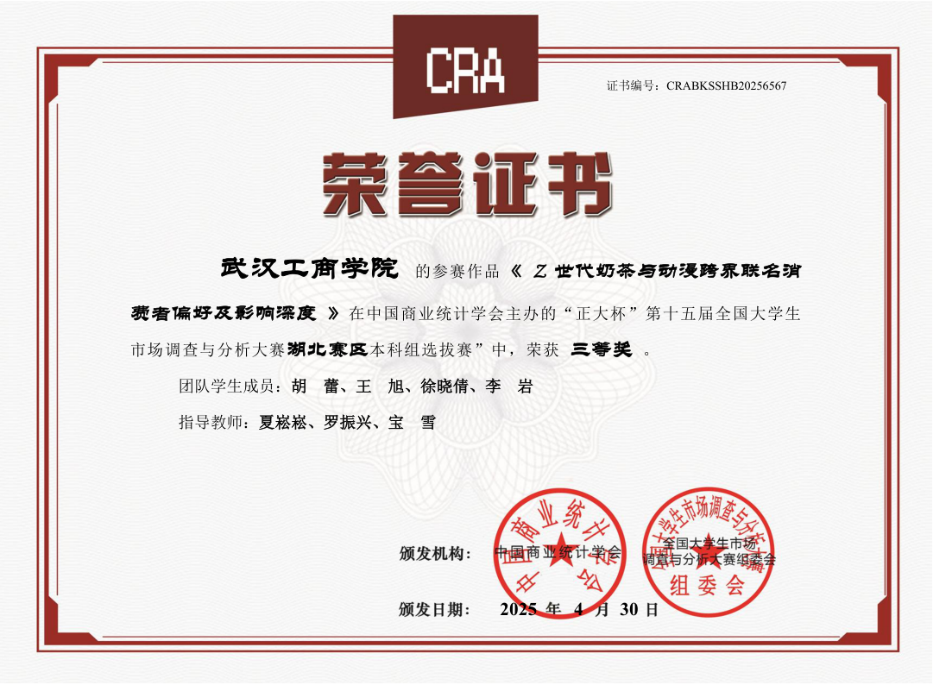 经济与商务外语学院新闻中心讯(记者:于昊阳)2025年4月26日,“正大杯”第十五届全国大学生市场调查与分析大赛湖北赛区本科生组选拔赛在中南财经政法大学圆满落幕。本次赛事吸引全省57所本科高校的3000余支队伍同台竞技,竞争激烈。