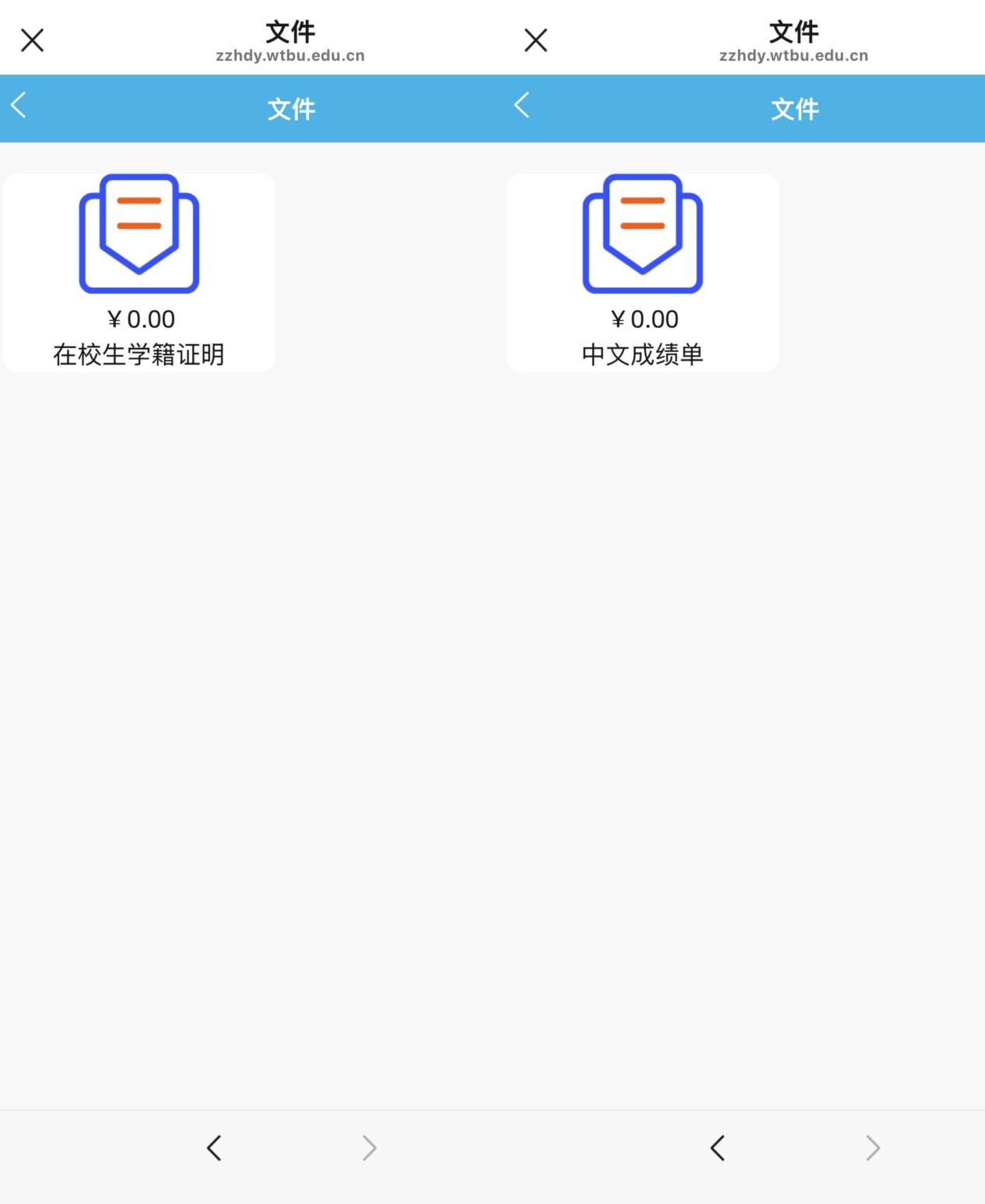 第五步:打开“在校生学籍证明”(选择证明类);打开“中文成绩单”(选择成绩单类)