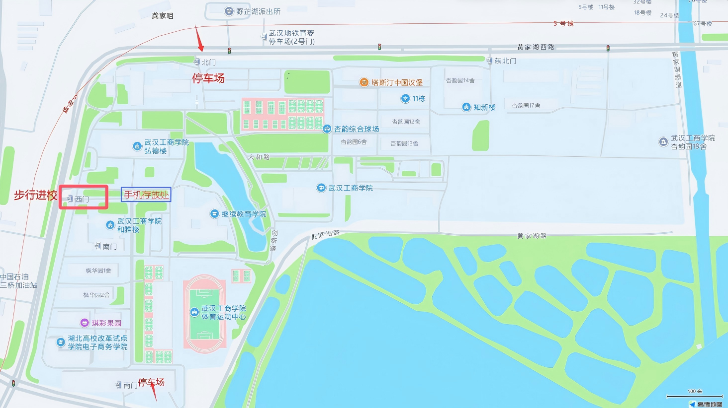 5. 我校考场规模较大,手机存放处、安检处在人员进场高峰时均会排队,请考生配合现场工作人员管理及安排,在规定区域内候考。请看清考试通知单上的考场楼栋编号,以免排错队伍,延误入场时间。