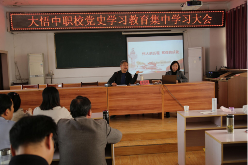 (通讯员 李枥霖)4月16日,米乐mile官方网站思政课部红心闪闪实践队在党支部书记涂婷和主任艾萍的带领下,到大悟县楚才中学开展“我为家乡送党史”活动。本次活动主要包含“讲”和“学”两个环节,一是“讲”,由支部书记涂婷进行解放前党史介绍,支部老党员李纪明教授进行解放后党史专题讲座;二是“学”,全体党员教师到革命纪念馆学习。据悉,这是思政课部连续两周利用假期开展该活动,用行动贯彻习总书记在“党史学习教育动员大会”上的讲话精神,深入开展党史学习教育,增强“四个意识”、坚定“四个自信”、做到“两个维护”,提高思想认识和政治站位。思政课部李纪明教授为楚才中学全体党员干部讲述中国共产党的伟大的历程和辉煌的成就。楚才中学全体教职工党员及班子成员参与了此次党史教育集中学习。