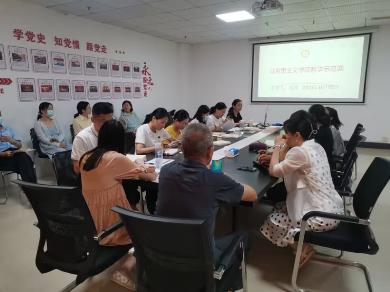 (通讯员 余梦)2023年6月15日下午1点,马克思主义学院在1102会议室开展《中国近现代史纲要》课程示范课活动。本次示范课由涂婷老师与田果老师主讲,全体马克思主义学院教师参与此次活动。