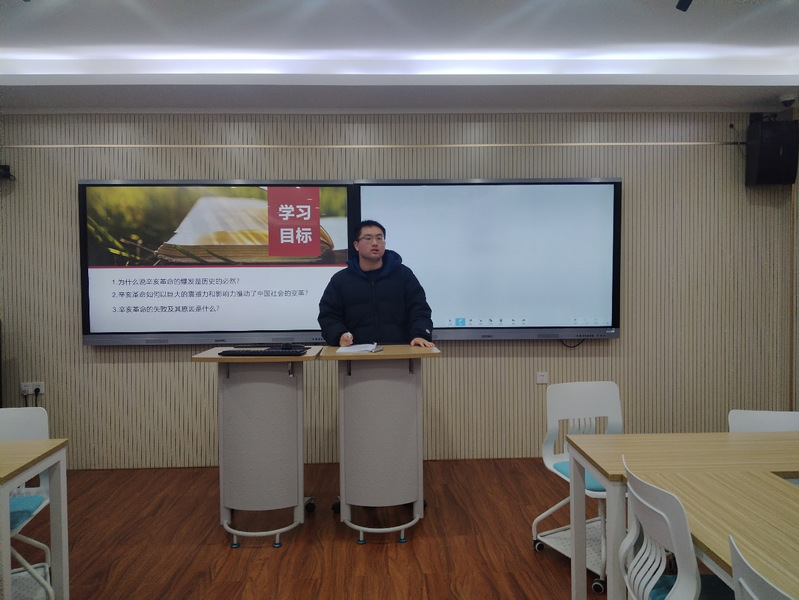 随后,由邱明磊老师对专题四“民国的诞生”进行教学脉络分析和授课内容梳理,包括辛亥革命爆发前夜、辛亥革命的爆发与建立民国、革命的失败等内容。其中还对英国君主立宪制的特点进行了扩展分析,涂婷老师指出,要讲好《纲要》课,深入备课的重要性,通过对邱老师充分备课的肯定,寄语青年教师认真对待教师岗位,努力刻苦钻研,不断提升教学水平。