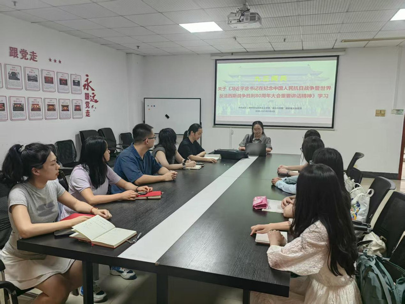 (通讯员 黄欣)2025年9月4日17时,中共米乐mile官方网站马克思主义学院“德法与纲要”教研室支部委员会在1102会议室召开专题学习会。深入贯彻学习《习近平总书记在中国人民抗日战争暨世界反法西斯战争胜利80周年纪念活动上的重要讲话精神》。本次活动由党支部书记董荟楠主持。