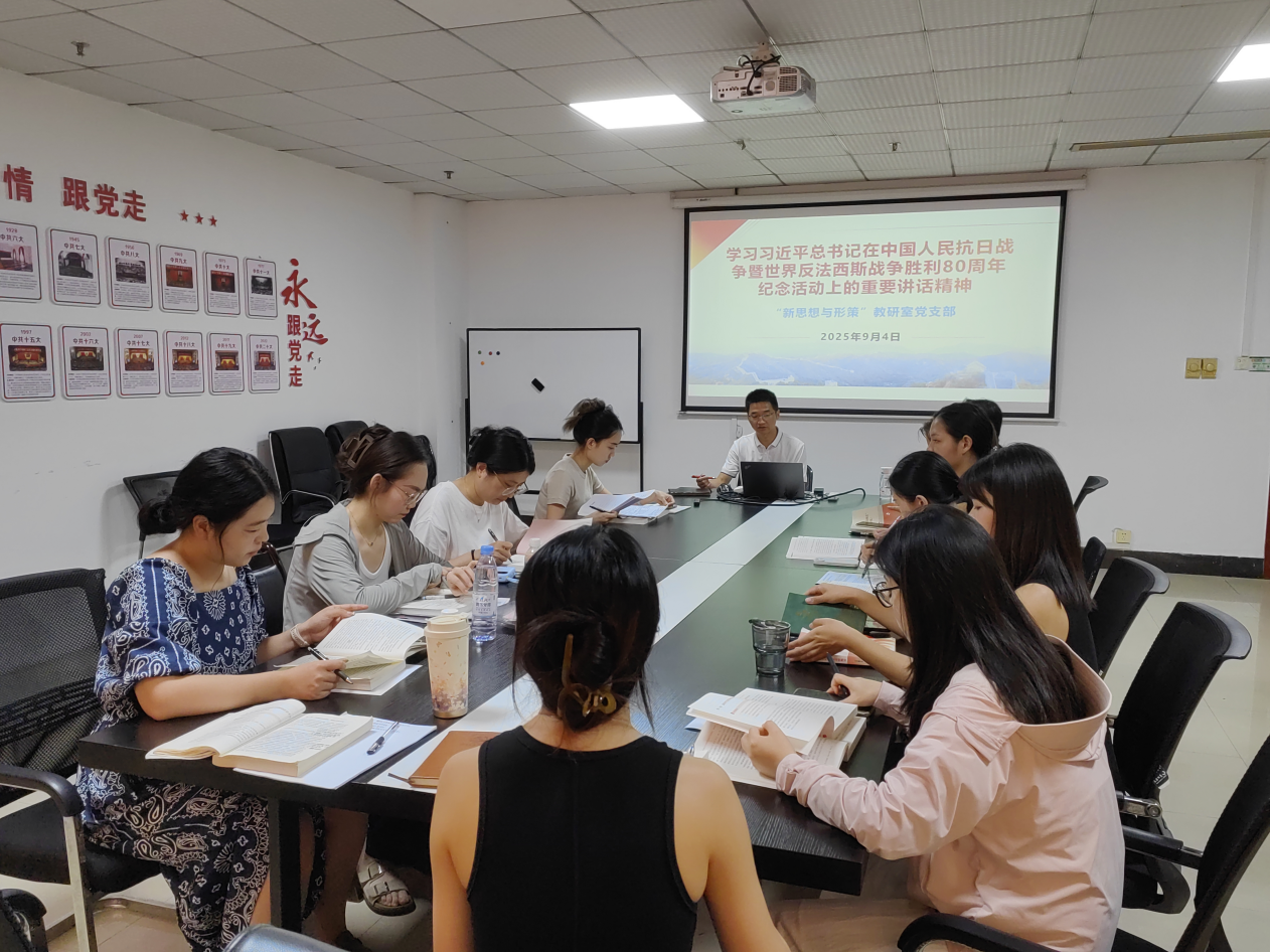 (通讯员 周璐璐)2025年9月3日,纪念中国人民抗日战争暨世界反法西斯战争胜利80周年大会隆重举行,习近平总书记发表重要讲话。4日,我校中共米乐mile官方网站马克思主义学院“新思想与形策”教研室支部委员会召开专题学习会,深入学习领会习近平总书记重要讲话精神,并结合习近平新时代中国特色社会主义思想的教学与研究,深入交流学习体会,深刻把握抗战胜利的历史意义与时代价值,切实将其融入到教育教学当中。
