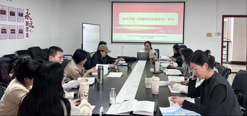 (通讯员 罗铭璇)为深入学习贯彻习近平总书记关于师德师风建设的重要论述,2026年4月9日,马克思主义学院“德法与纲要”教研室党支部于1102会议室组织开展师德师风专题教育活动。本次活动由党支部书记董荟楠主持,党支部全部成员参会学习。