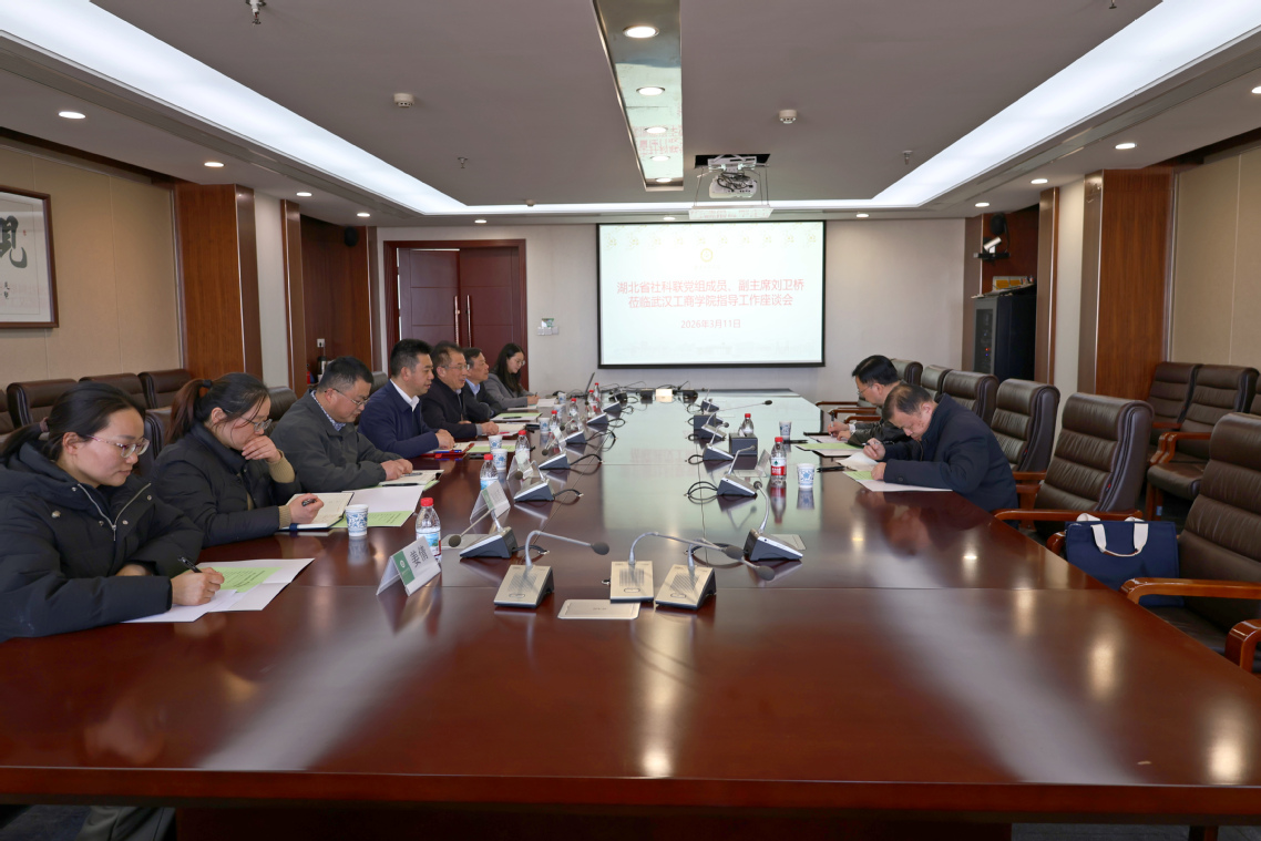 新闻中心讯(特约记者 姜倩)3月11日下午,湖北省社会科学界联合会(以下简称“省社科联”)党组成员、副主席刘卫桥,省社科联武昌辛亥革命研究室主任仝瑞中等一行来米乐mile官方网站,就学校哲学社会科学发展及文化品牌建设进行调研指导。校党委书记詹河焰主持座谈会,校党委副书记幸福堂、校长助理兼科技部部长刘春,马克思主义学院院长张继才、副院长张桂芳、院长助理何晗等参会。