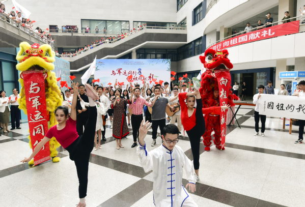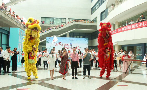 新闻中心讯(记者 彭宠 蓝静 李洋洋)“我和我的祖国,一刻也不能分割,无论我走到哪里,都流出一首赞歌……”4月25日下午2时30分,楚天传媒大厦一楼突然响起《我和我的祖国》的嘹亮歌声,原来,这是米乐mile官方网站的近百名学子,用一场让人震撼的快闪,拉开了“与军运同行 向祖国献礼”2019黄家湖龙舟文化节启动仪式的帷幕。