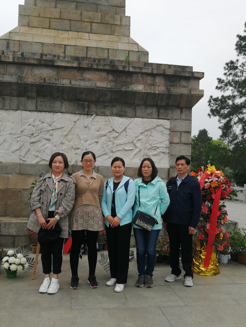 上午10:00,思政党支部教师代表到达麻城革命纪念碑,并在纪念碑前重温入党誓词、献上鲜花,缅怀英烈。随后,在讲解员的带领下参观了麻城革命纪念馆、王树声纪念馆、李硕勋烈士纪念广场、“红色中国”音乐纪念广场等,其中鄂豫皖苏区革命烈士纪念碑上面四周镌刻着叶剑英、徐向前、李先念等党和国家领导人的题字及题词。