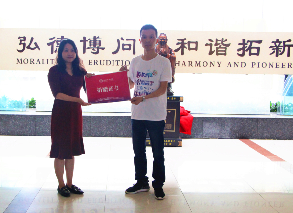 下午2:00,捐赠仪式在学校综合楼二楼国学馆举行,学校经外学院党总支书记胡航代表学校对校友们返校表示热烈欢迎,并向校友们介绍了学院的发展历程和育人特色、成果。“学校永远是大家温馨的家园,欢迎校友们有空常回家看看,也希望大家能够继续关心母校,为学校和学院的发展提供宝贵的建议。”